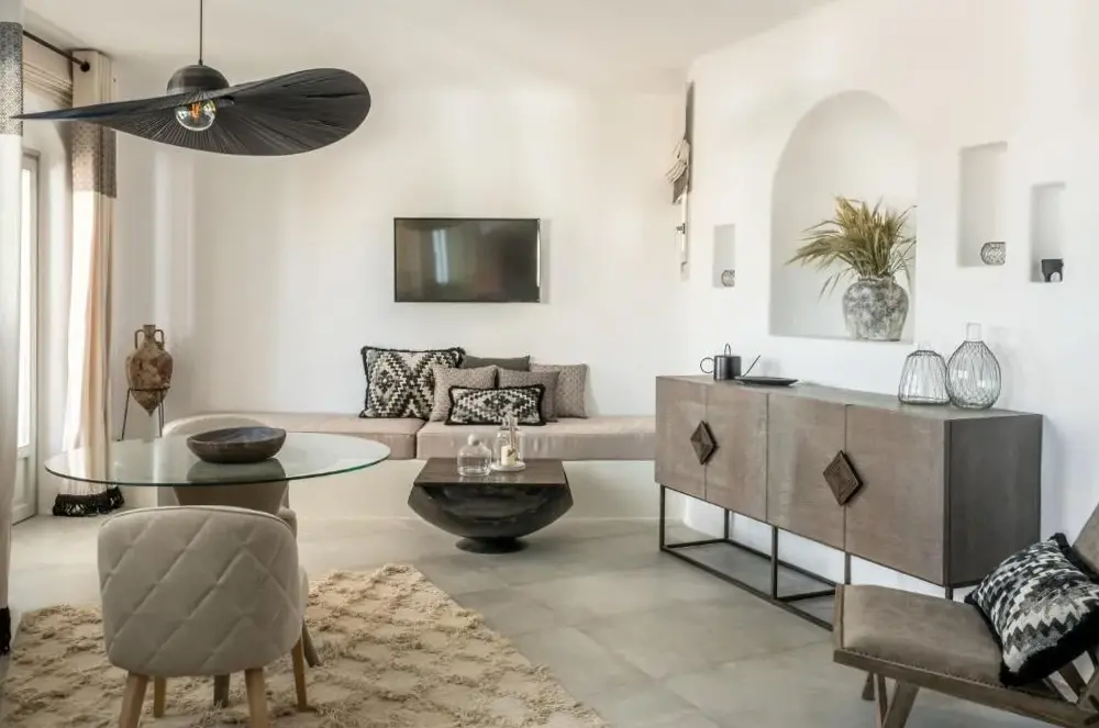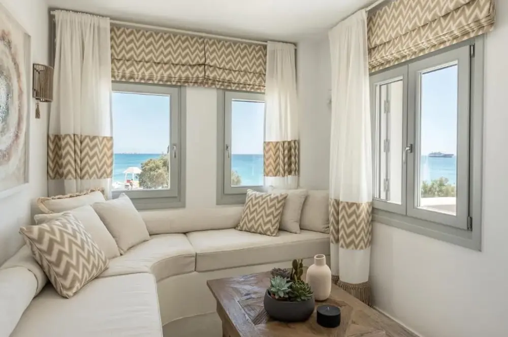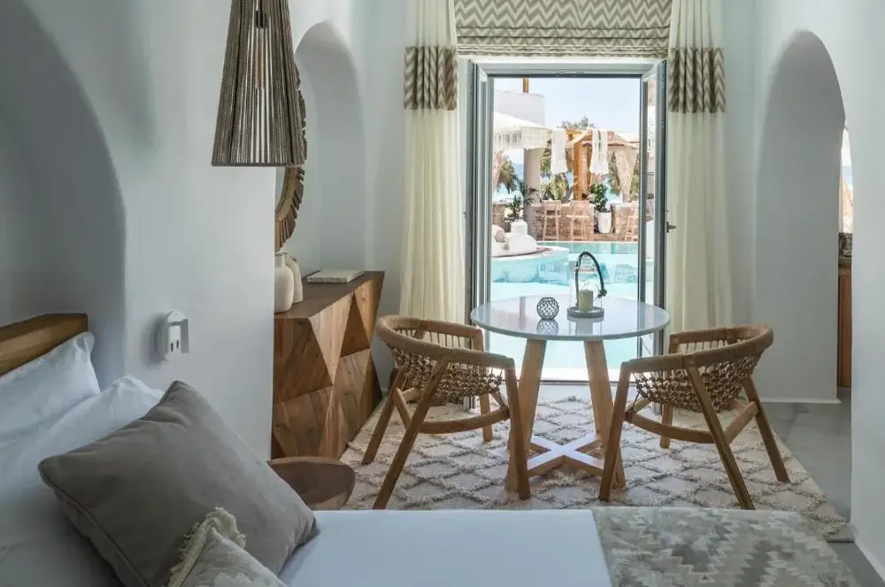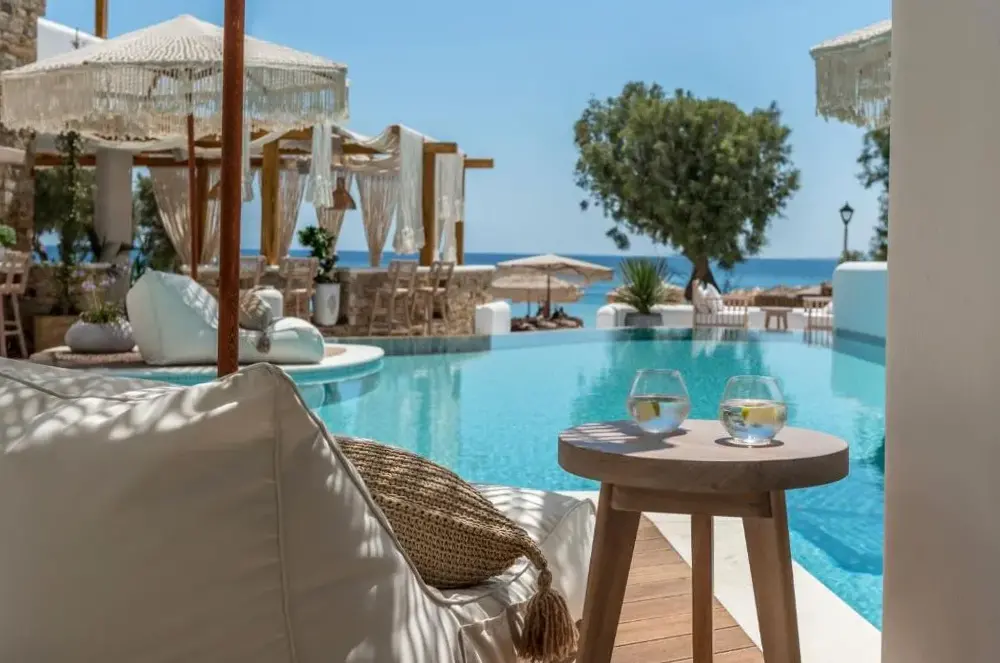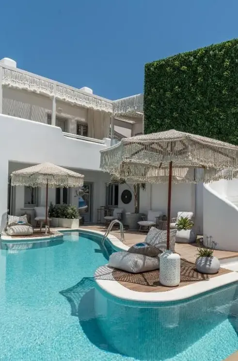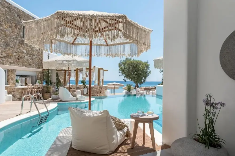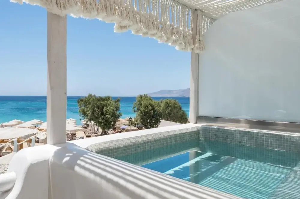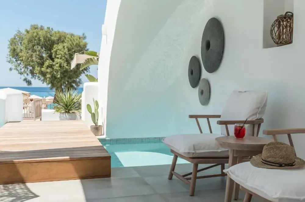 This is a 5 star boutique hotel in a great location in Naxos . Beach access is great and includes chairs and umbrella. Restaurant is amazing. You have to see this hotel to even imagine how unique and beautiful it is. Truly, the building itself and the decor are a dream come true. The owners and the entire staff and all employees are warm and friendly and helping with every detail of your time there !!! Definitely hope to return !!! ️️️